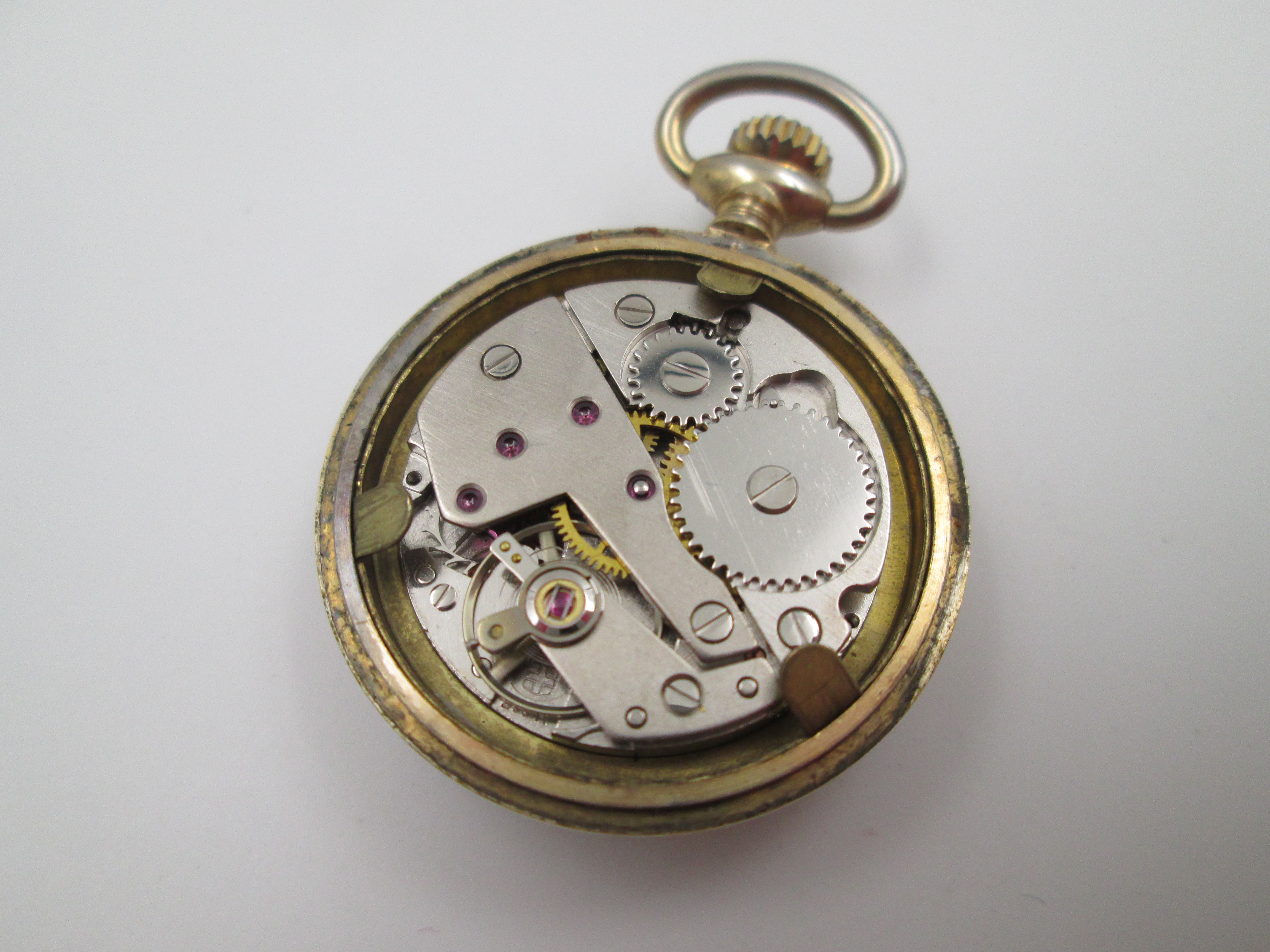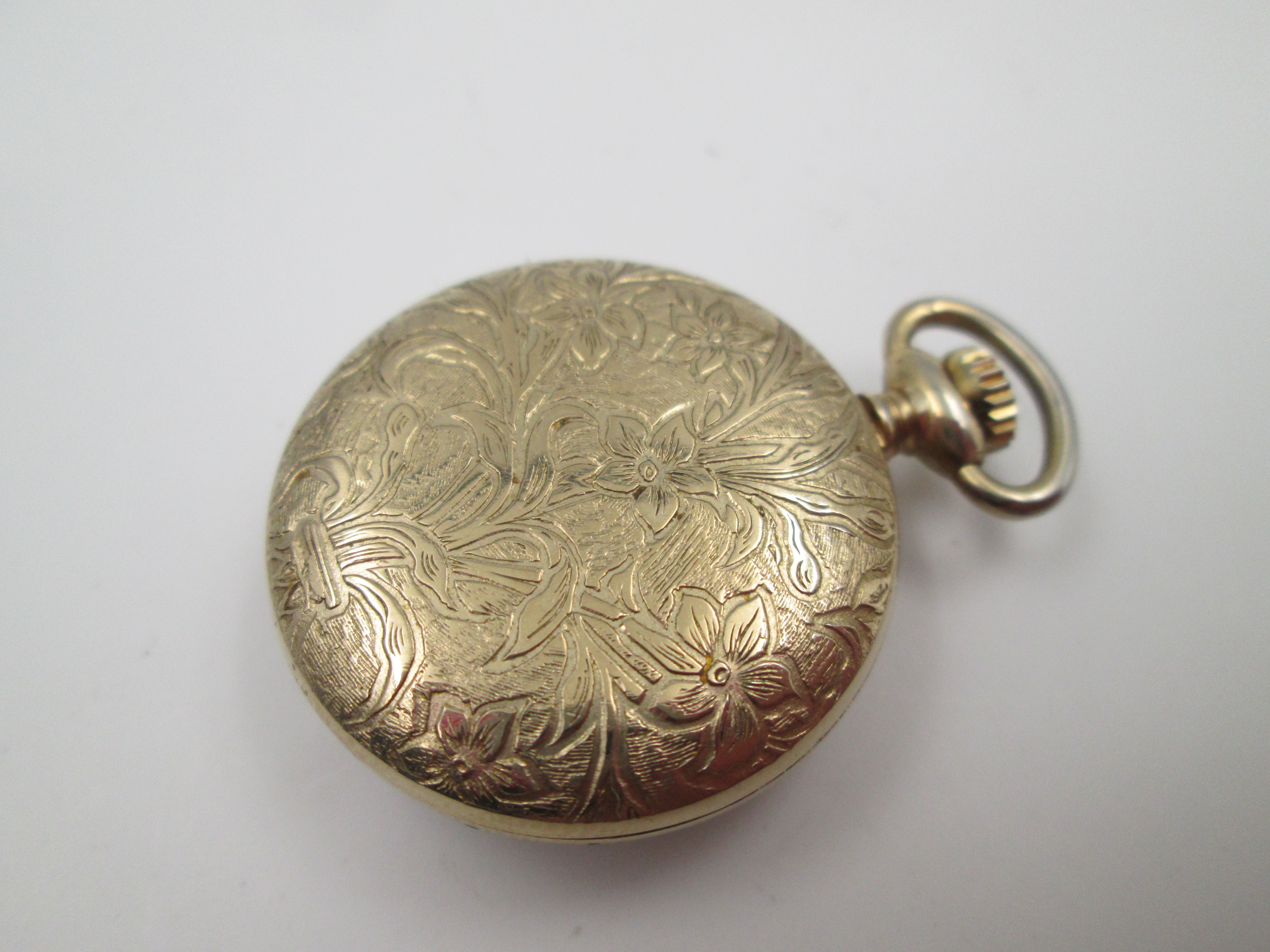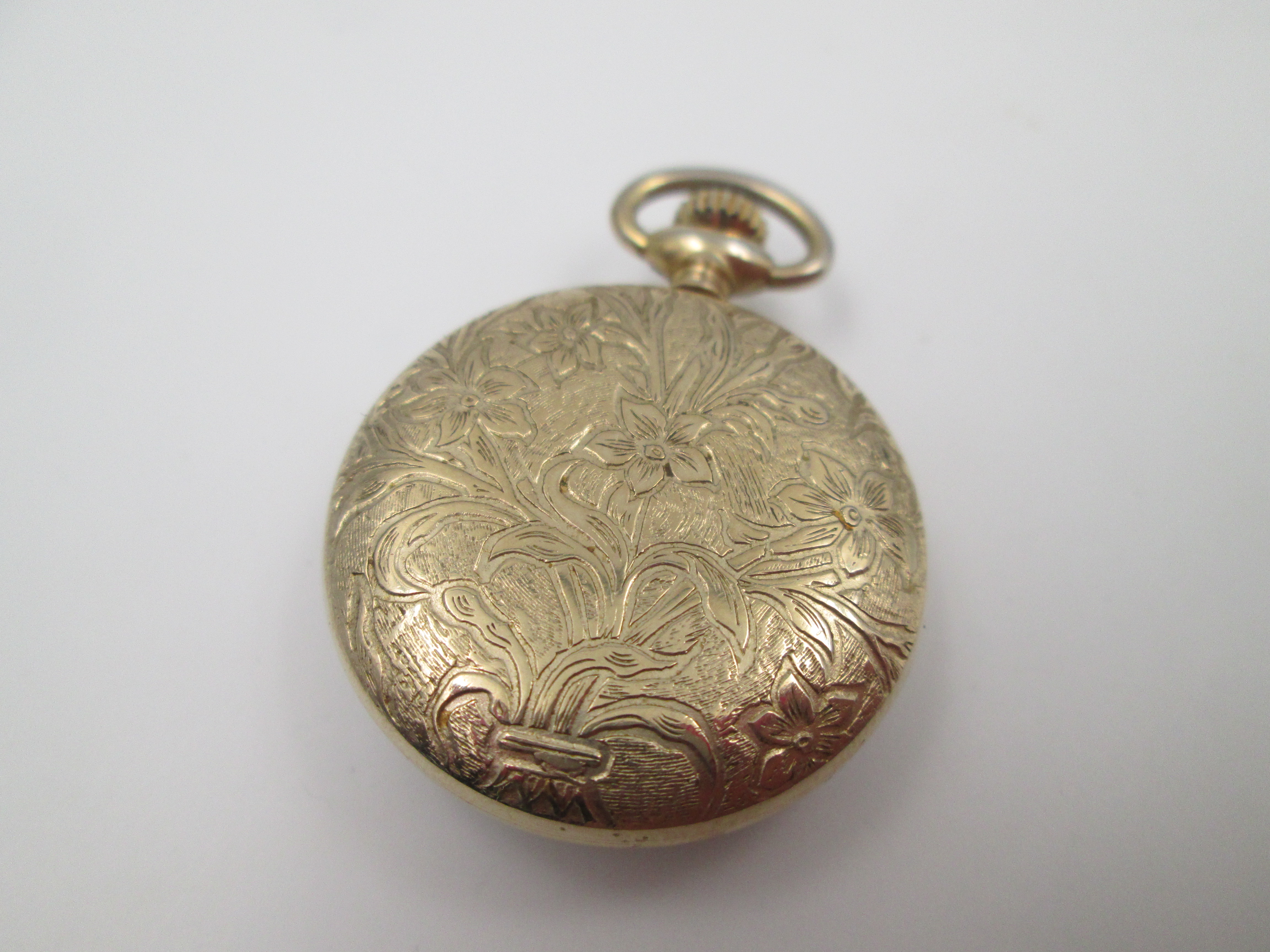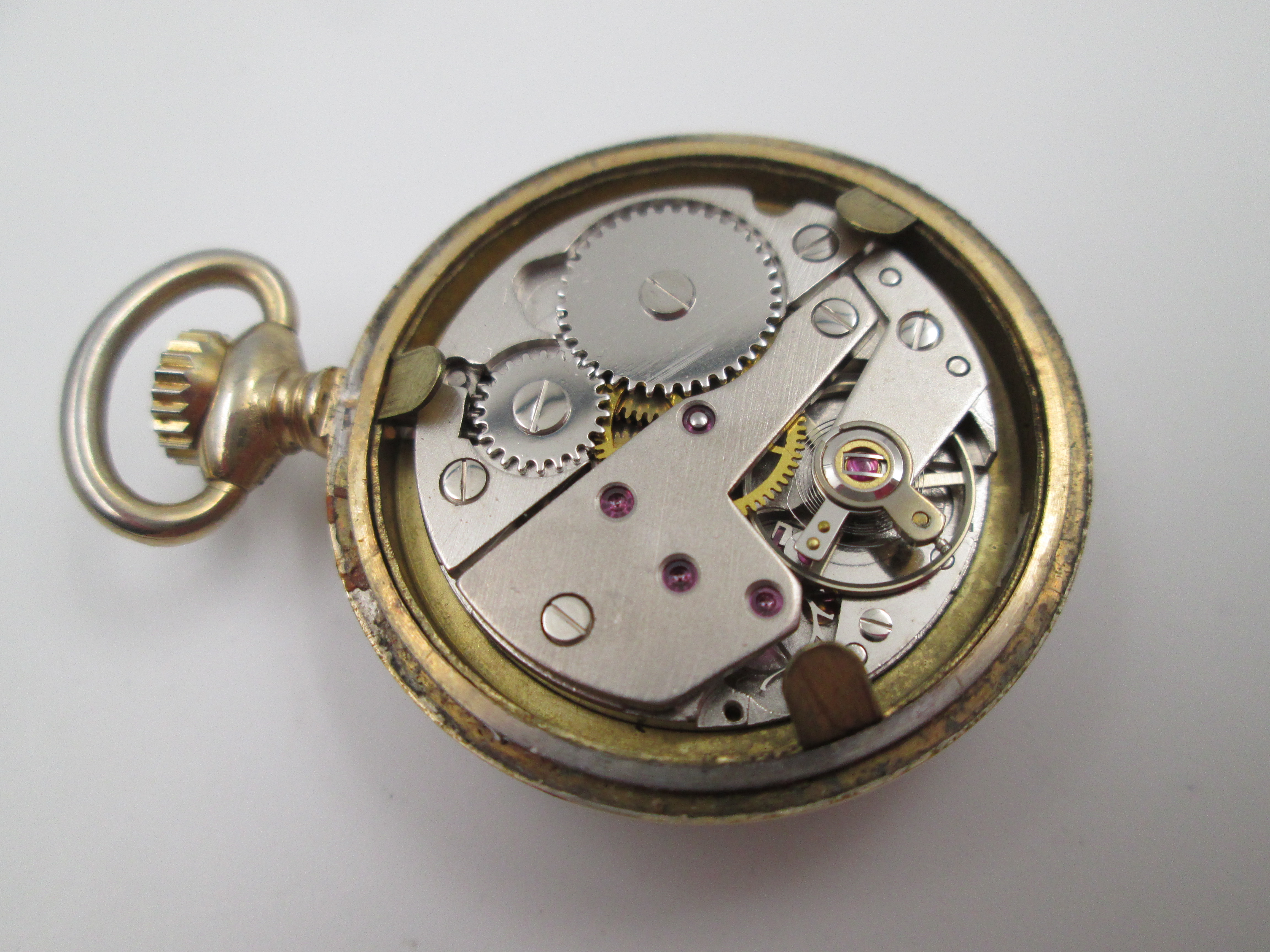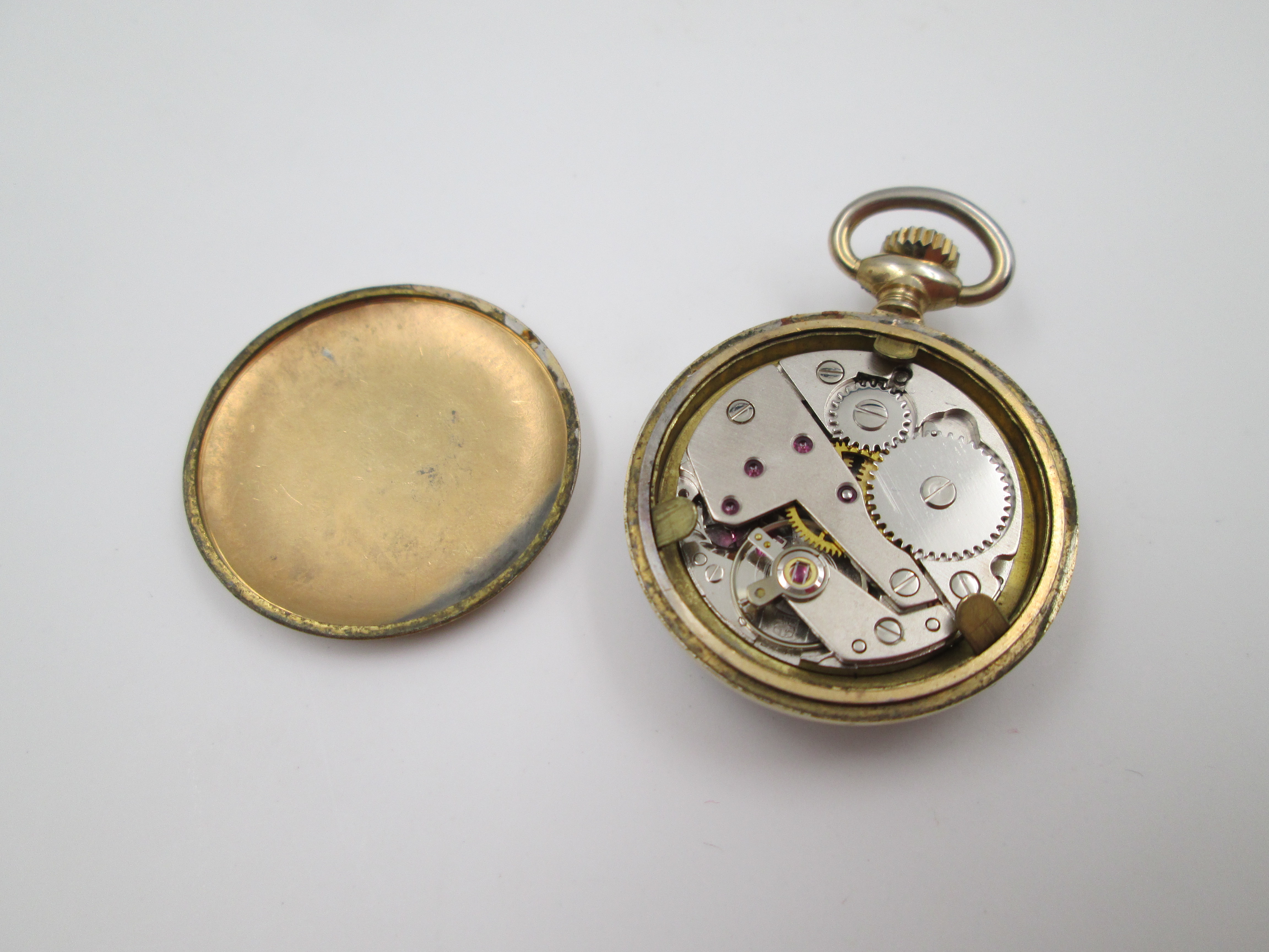 Gold plated metal. Stem-wind movement.